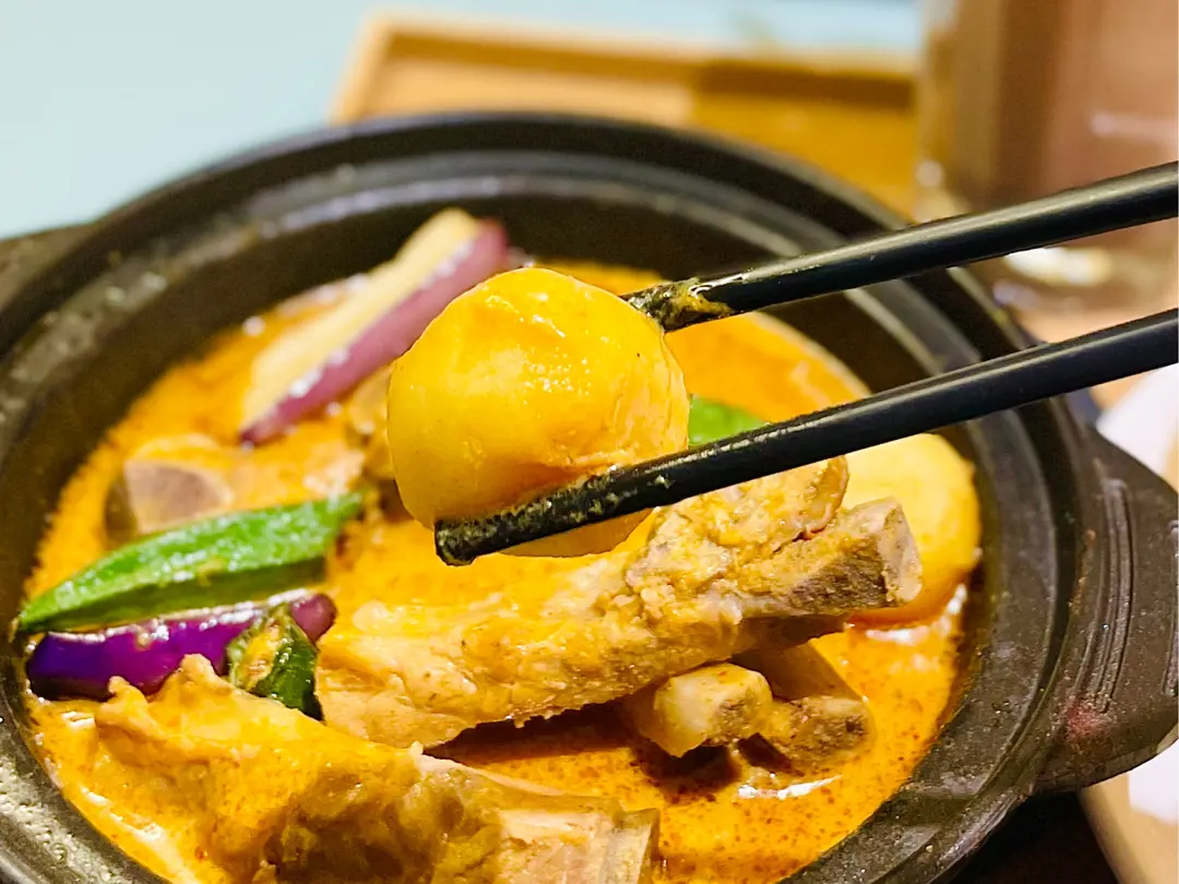 咖喱豬肋骨煲配白飯及香脆薄餅