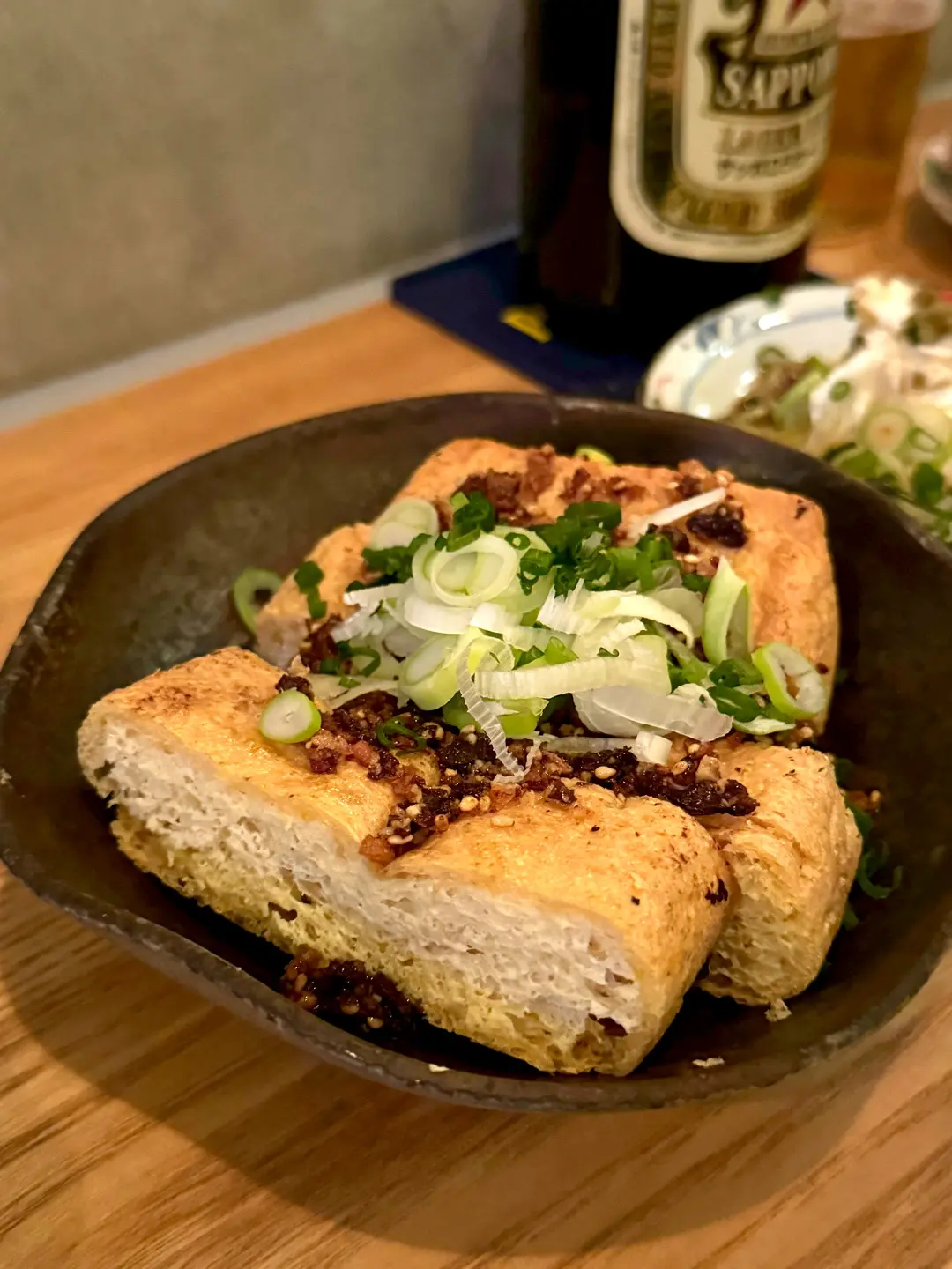 Fried tofu with miso and onion