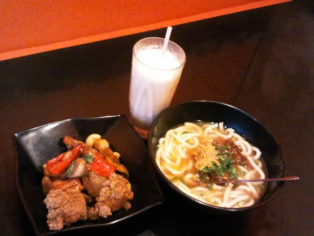 台式三杯雞 + 豬軟骨湯烏冬 配 茉香奶茶