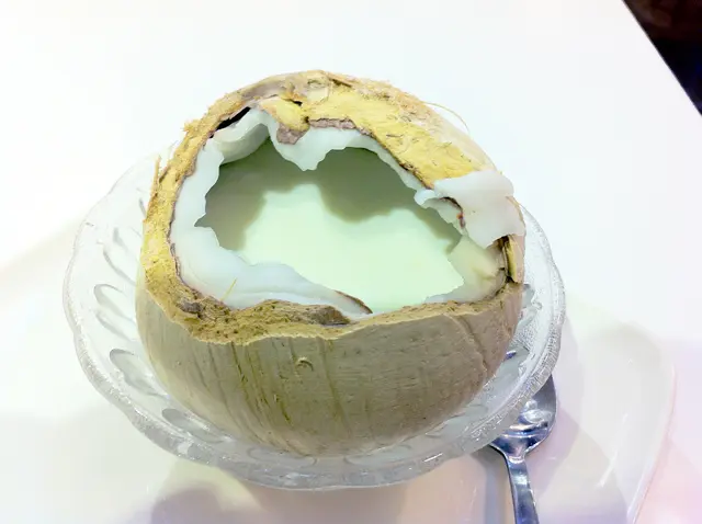 吃了一半的"椰林燉奶"