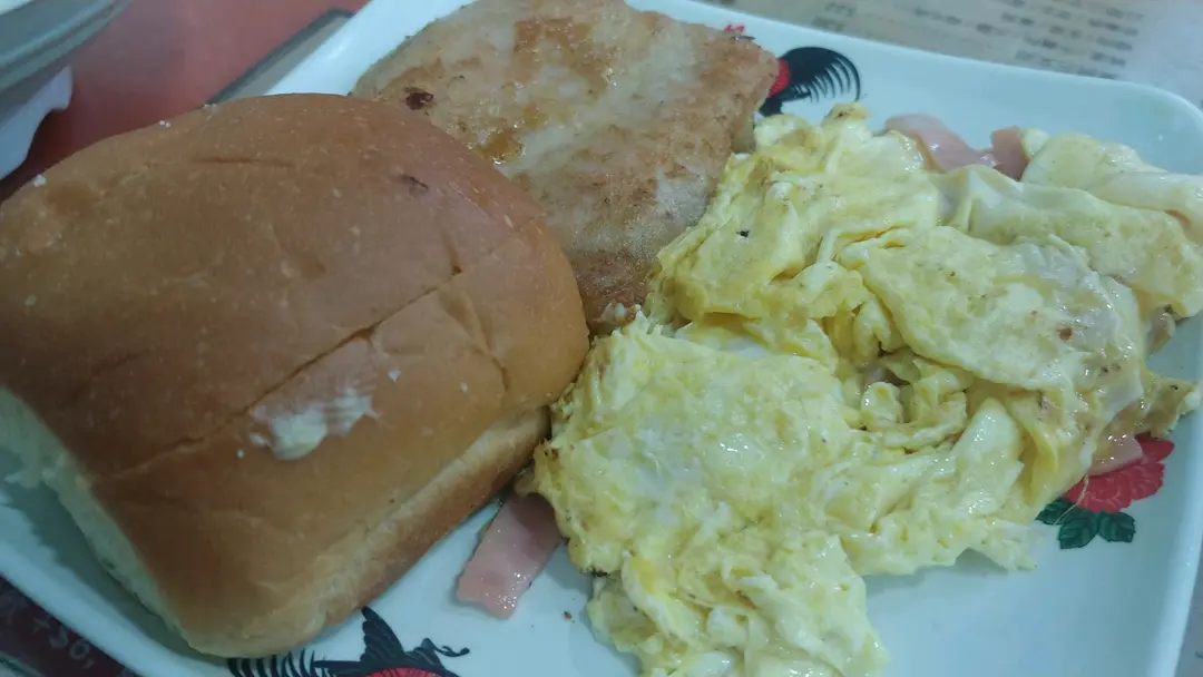 香煎豬扒、火腿奄列、牛油餐包