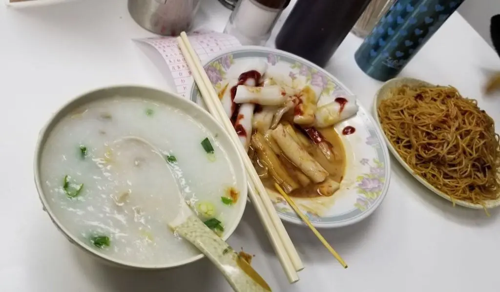 皮蛋瘦肉粥、腸粉、炒麵