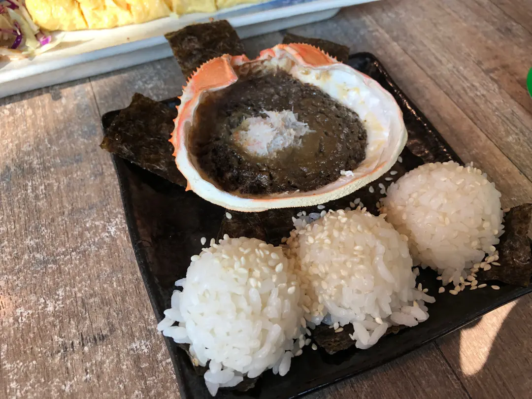 味噌蟹蓋配紫菜飯團