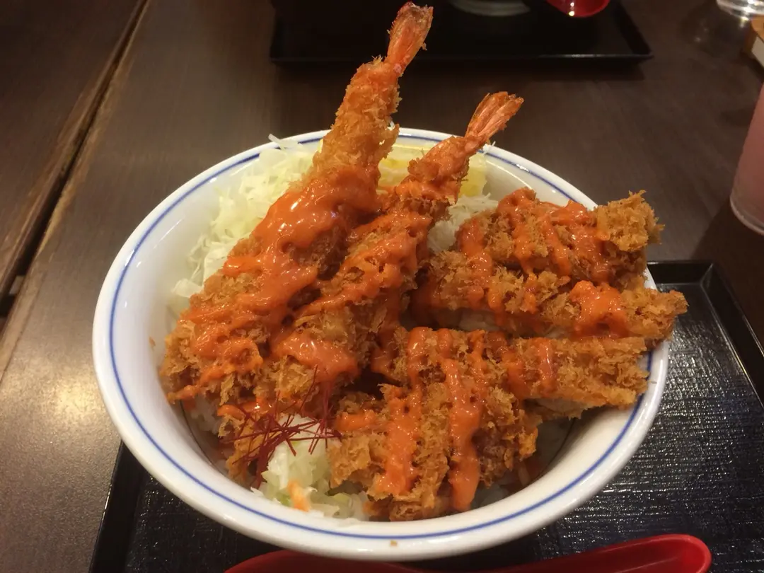 香蔥辣味沙律醬吉列炸蝦雞扒飯