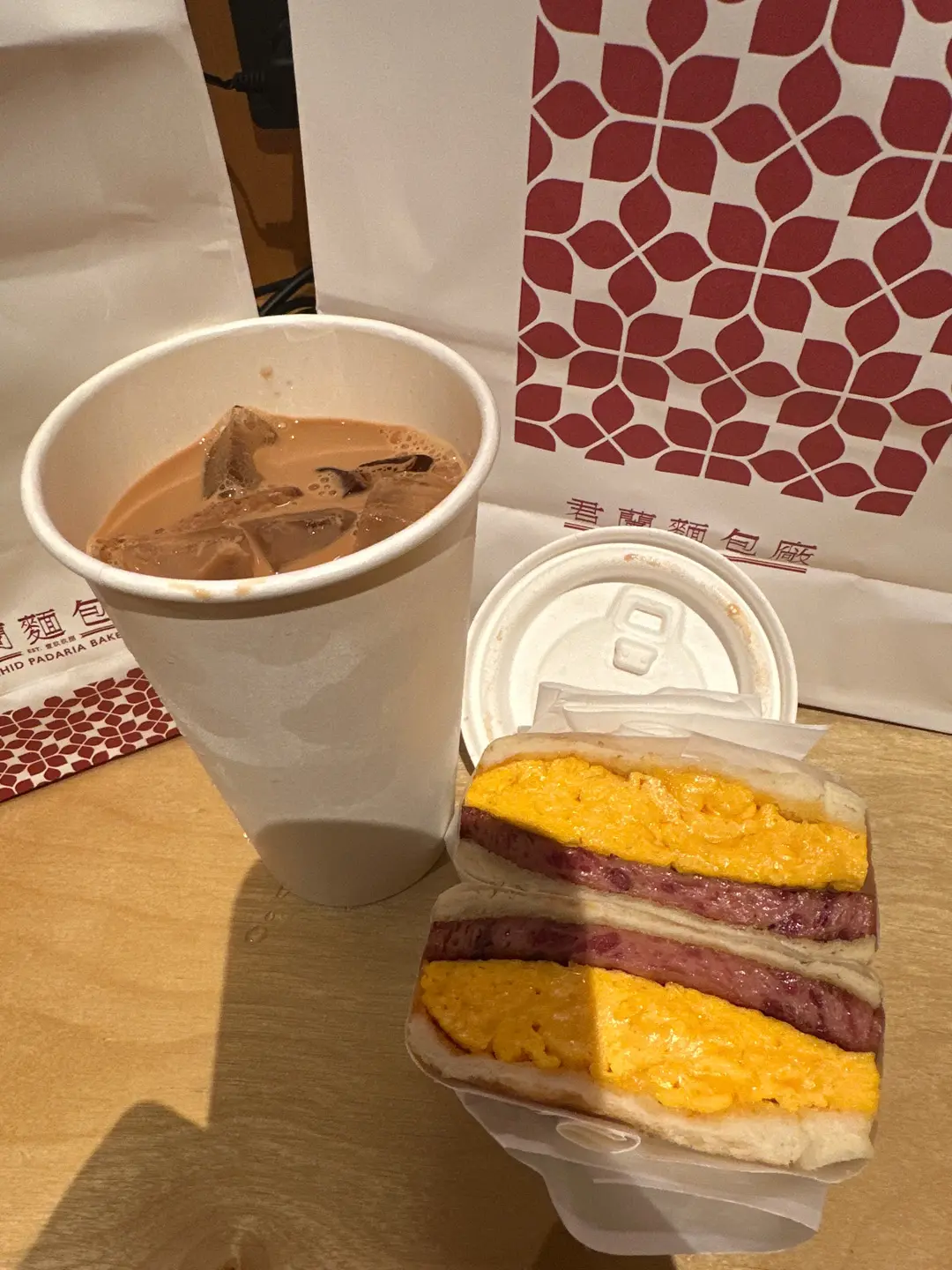 餐蛋三文治,凍奶茶