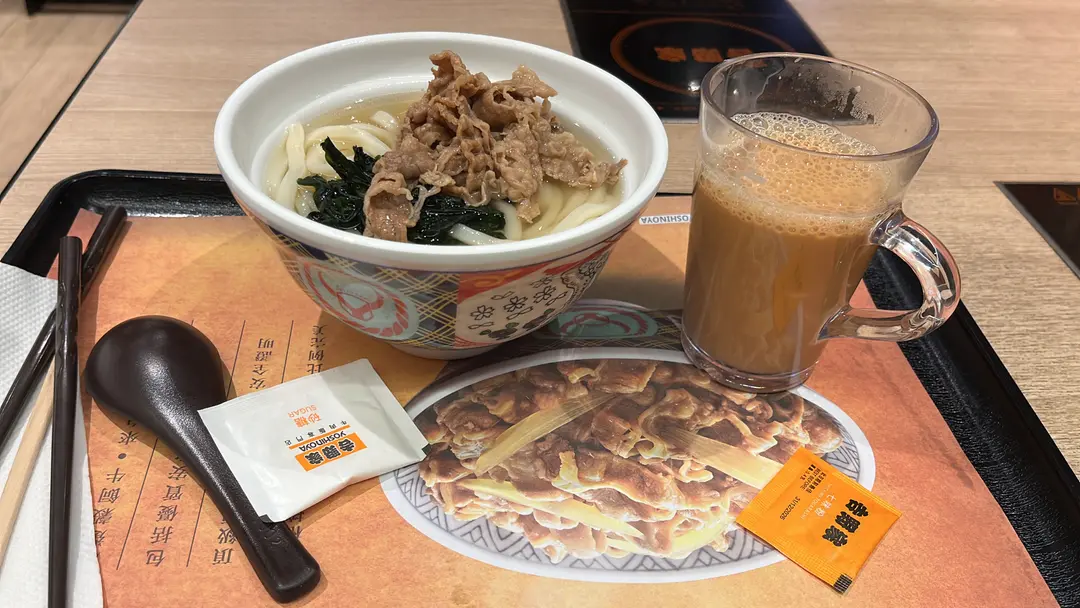 早晨之牛肉烏冬配奶茶