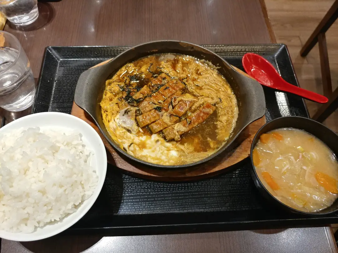 鐵板滑蛋鰻魚定食 (跟白飯及野菜豚肉湯)