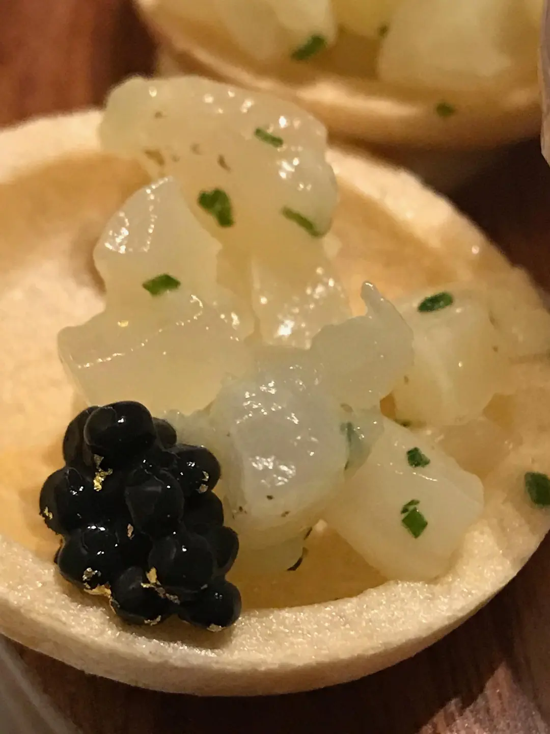 北海道帶子伴鴨肝魚子醬脆餅