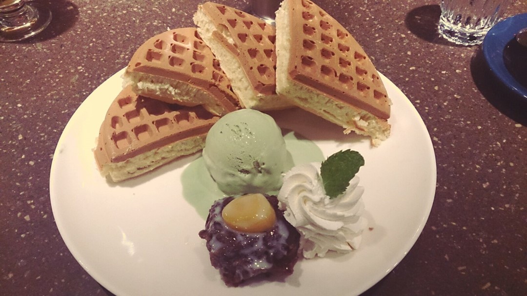 Green tea and red bean waffles
