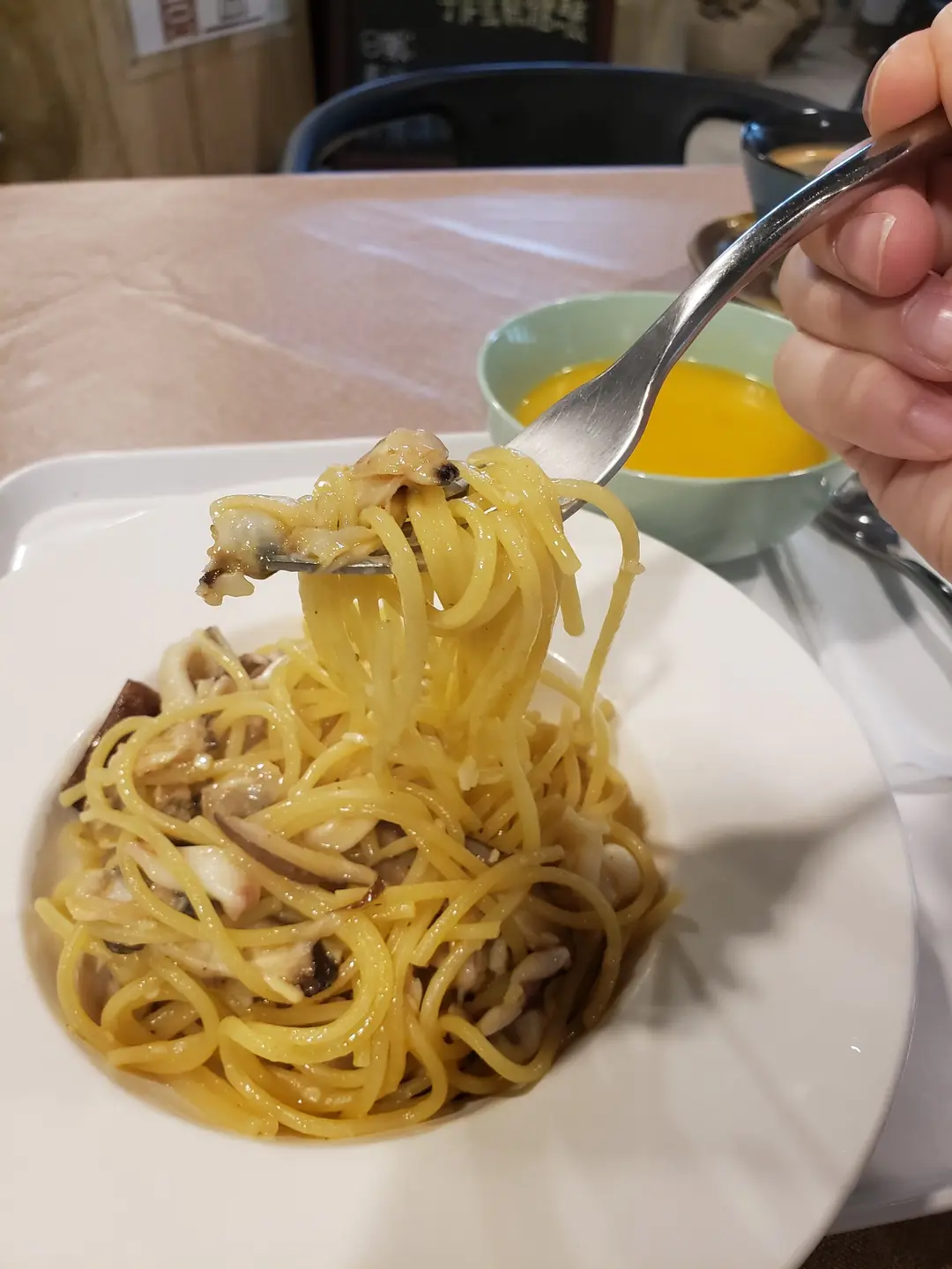 蒜辣清酒海鮮意粉(lunch set)