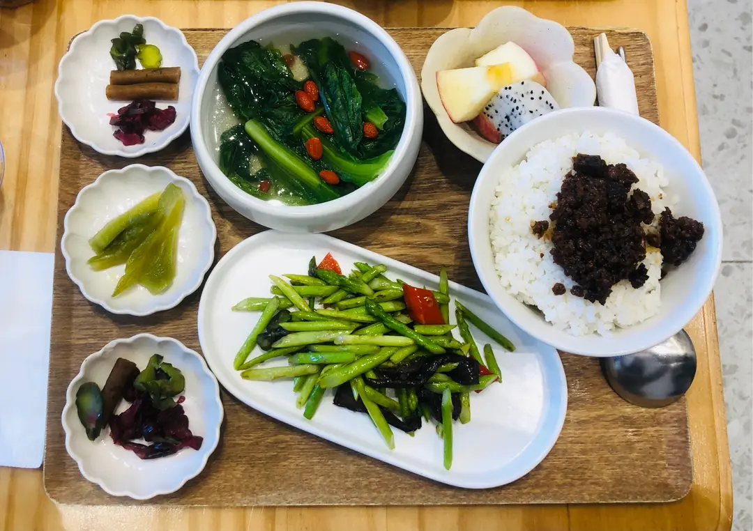 Omni pork 素食滷肉飯配牛肝菌炒蘆筍