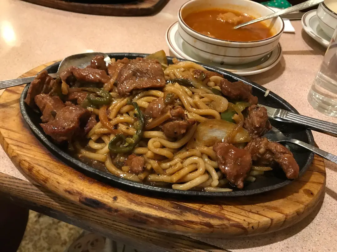 鐵板黑椒牛柳炒烏冬