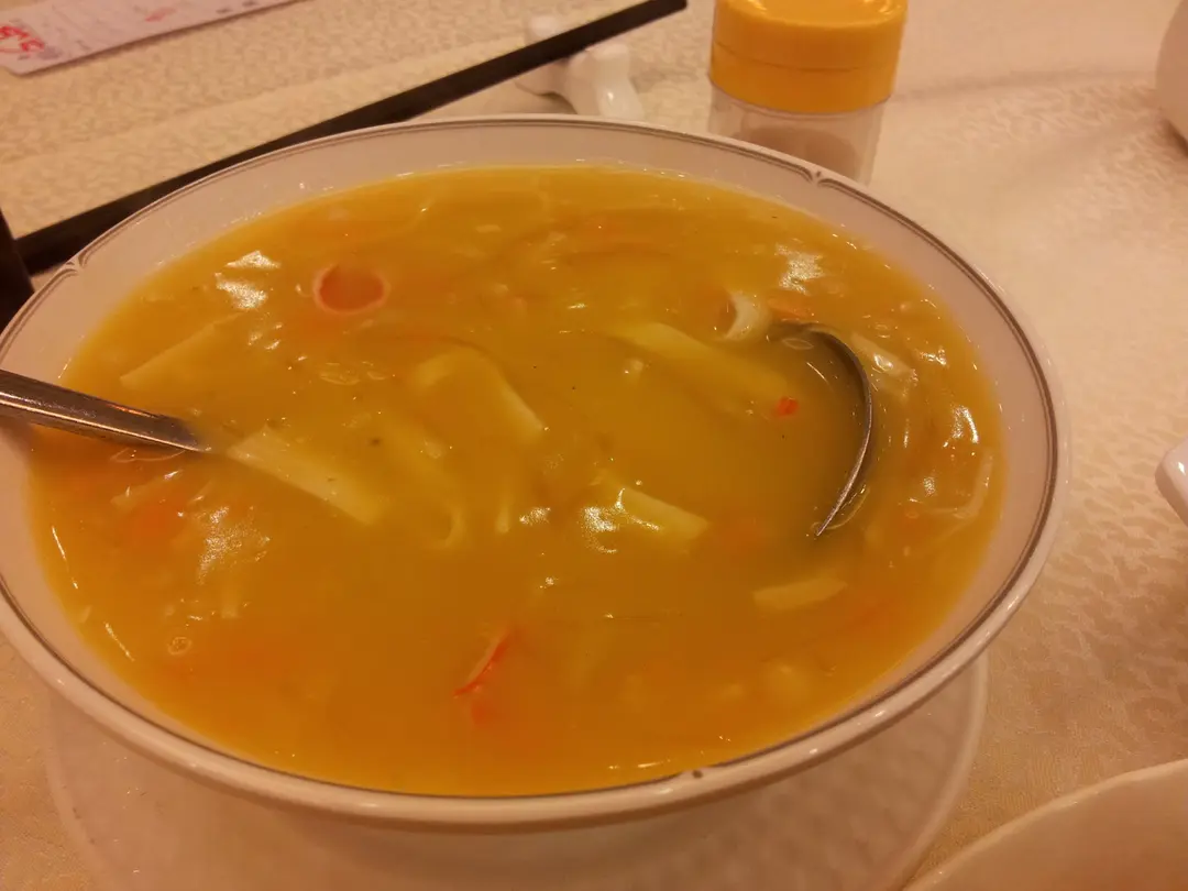 唔駛$100嘅二人餐:先黎個海皇素翅,湯底用南瓜做,味道調得很好,加上素蟹柳和素翅。不錯吃!