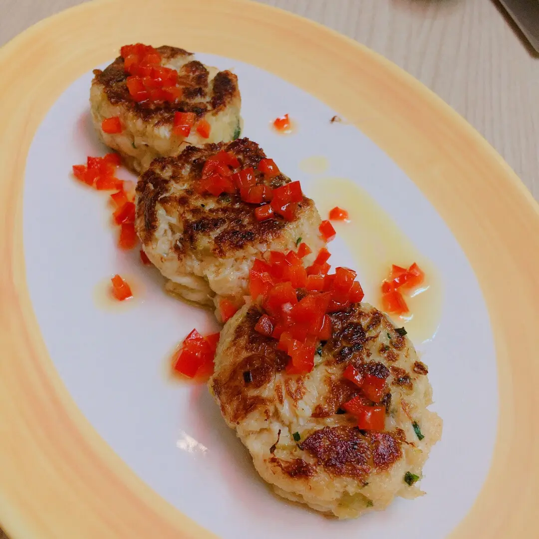 香煎蟹餅配蜜糖及紅椒