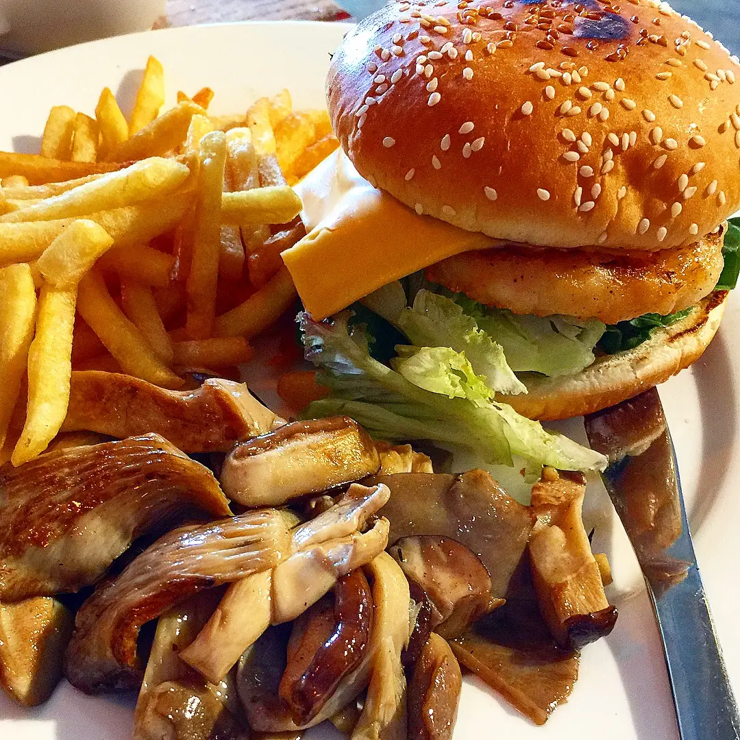 Pan-fried shrimp burger with French fries 美式蝦肉漢堡 配薯條 $82