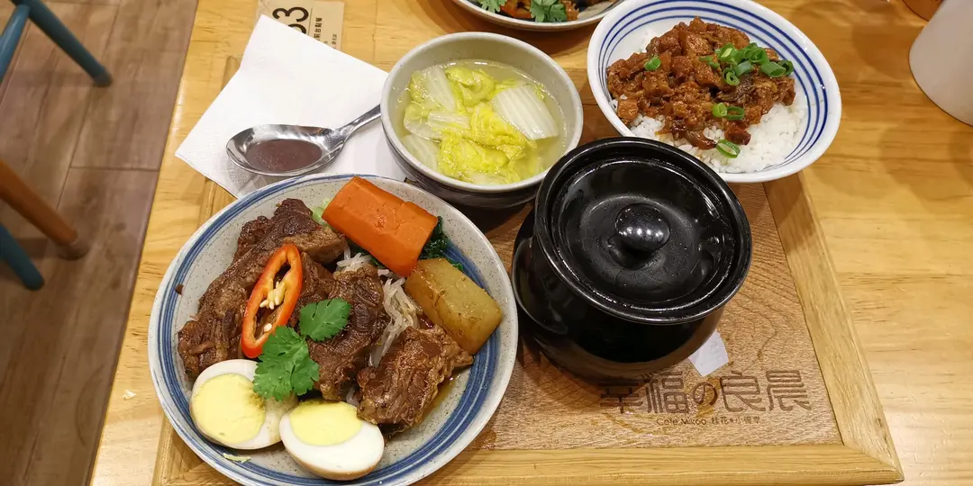 滷水蛋牛腩滷肉飯上湯浸時菜+綠豆薏米蓮藕燉排骨