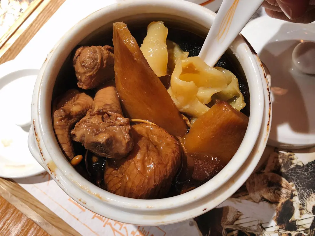 蟲草花花膠百合燉雞骨湯