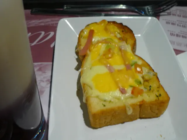 下午茶餐—三重芝士火腿厚多士配紅豆冰