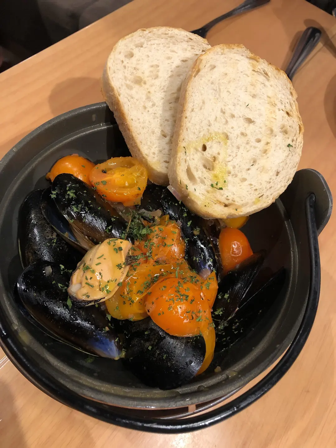白酒番茄汁煮藍青口配酸種麵包