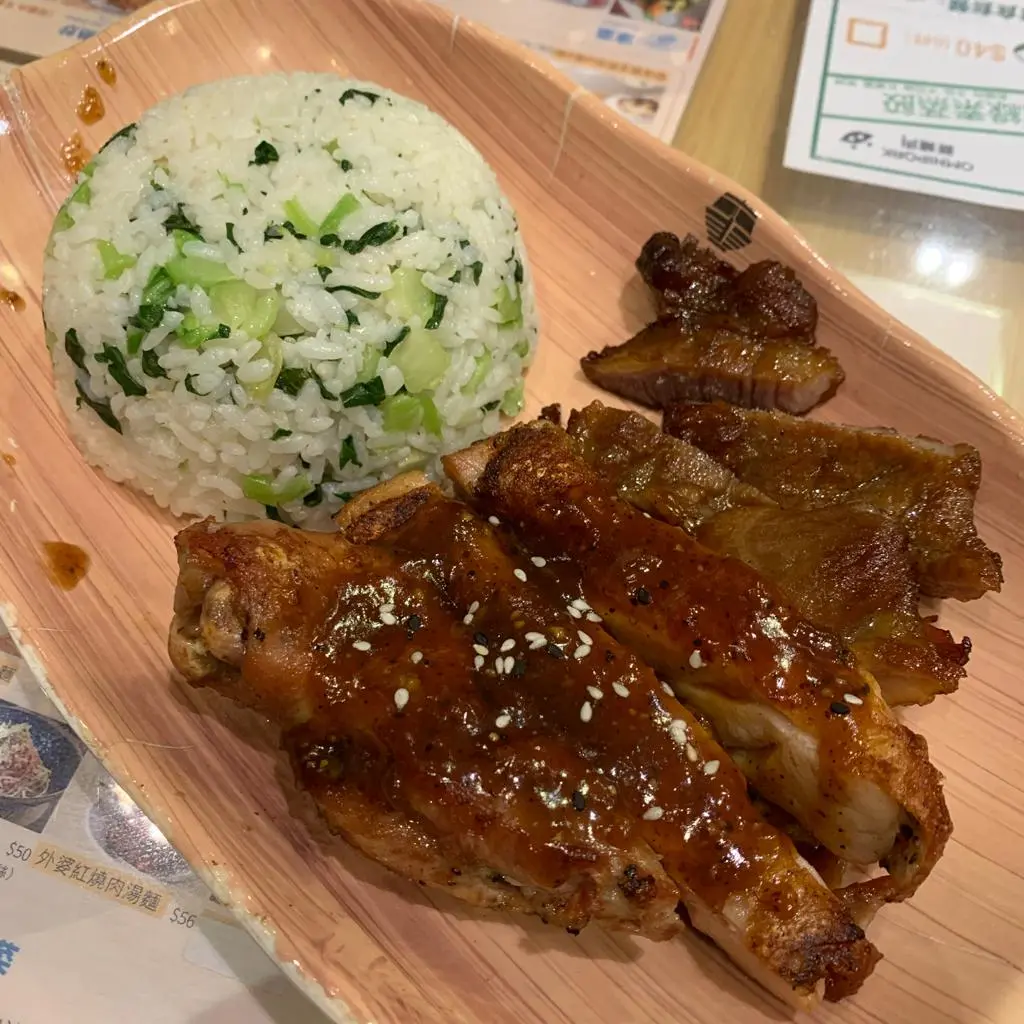 秘製厚切豬扒拼蜜椒雞扒菜飯