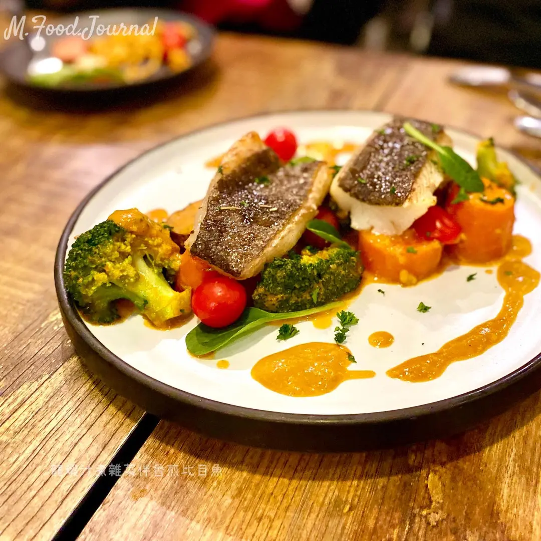 龍蝦汁煮雜菜伴香煎比目魚