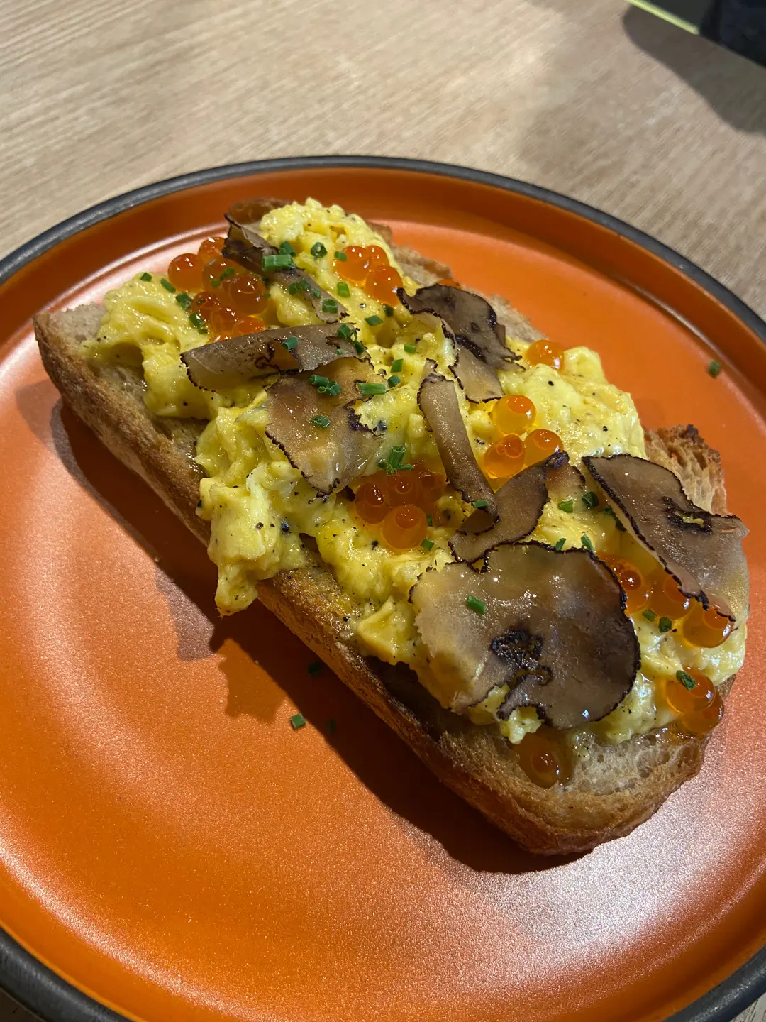 黑松露炒蛋三文魚籽多士