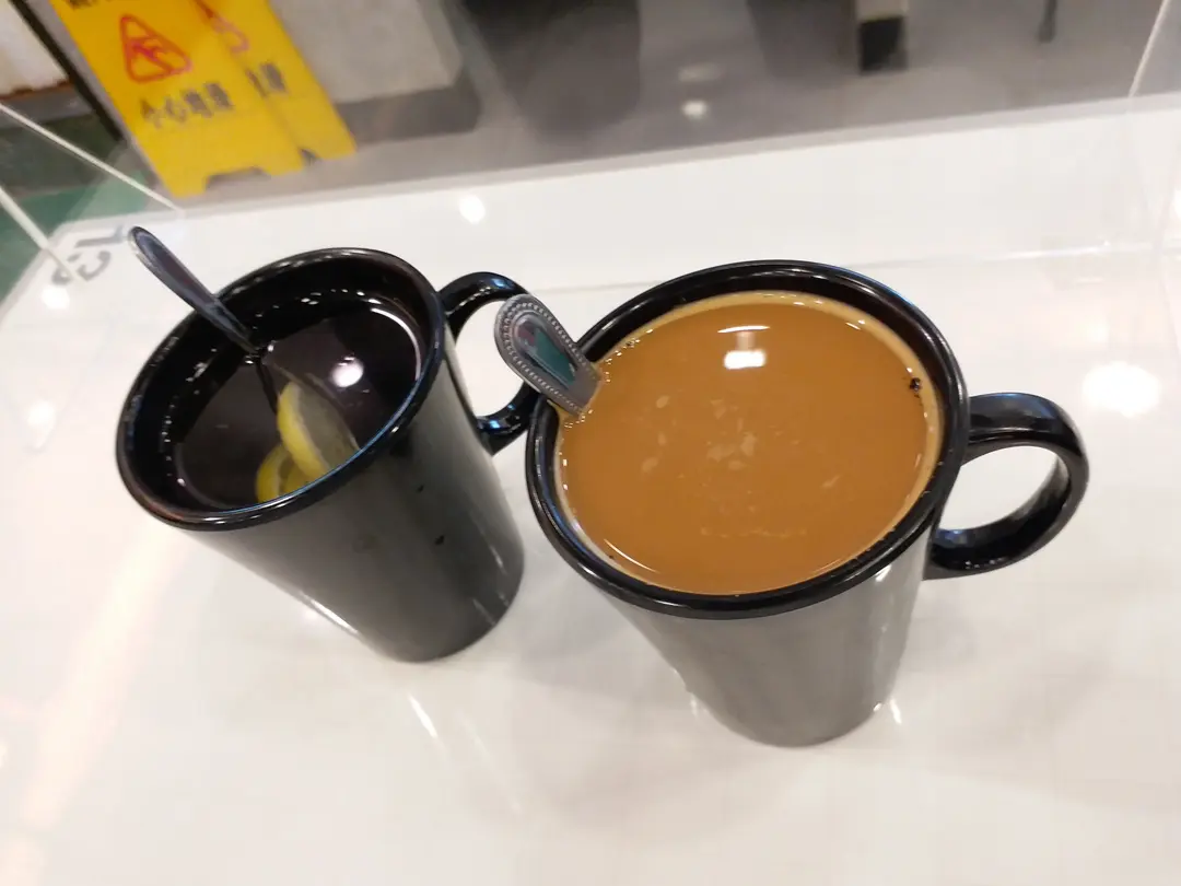 左: 熱檸水, 右:熱奶茶