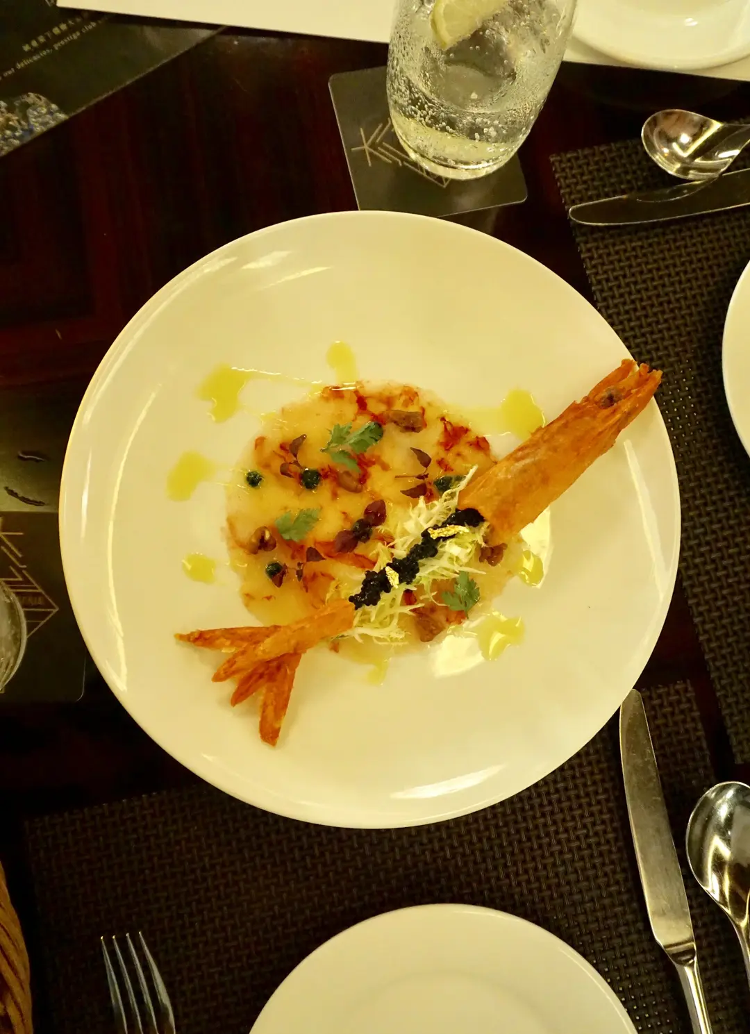 西班牙紅蝦薄片配合桃及香草汁