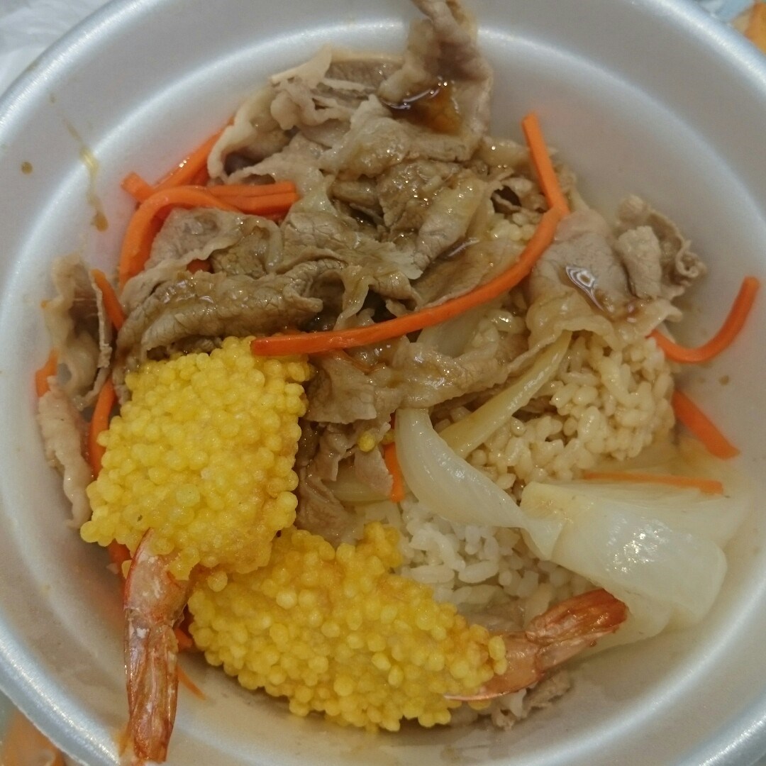 爆脆炸蝦牛肉丼
