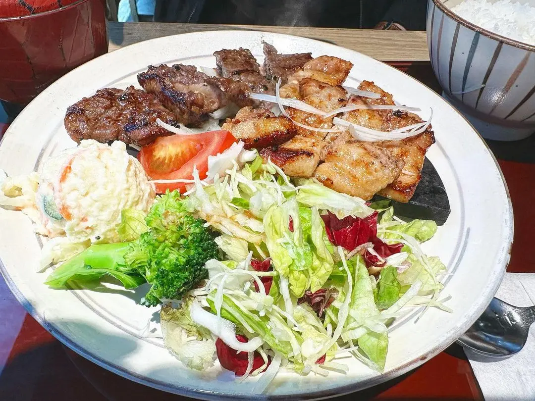 燒醬油麴熟成五花腩拼牛扒定食