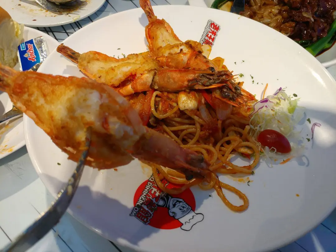 百花齊放(蒜蓉大蝦番茄汁意粉)