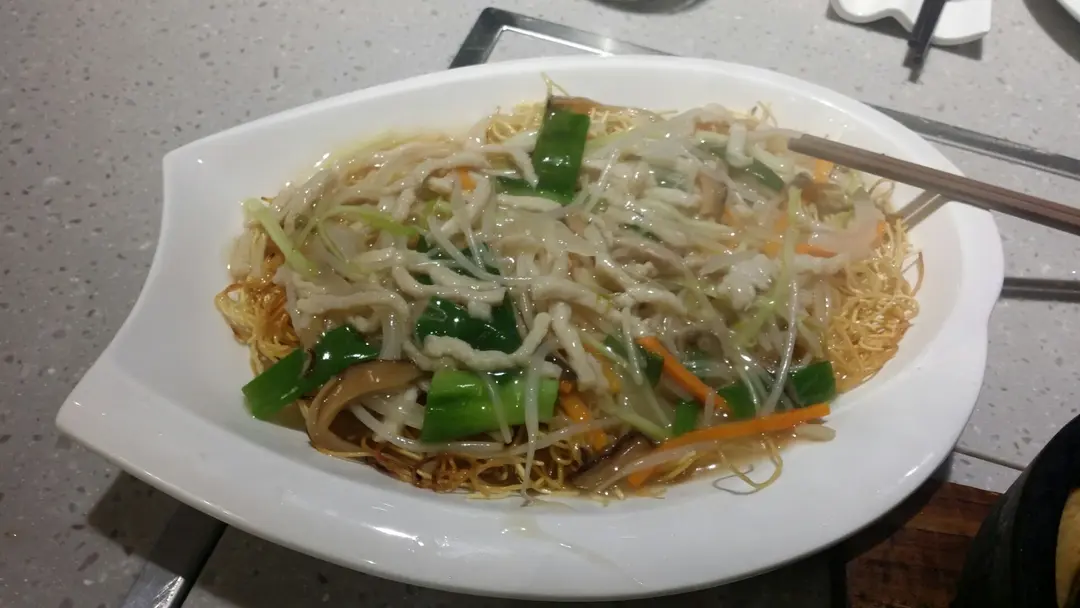 銀芽肉絲兩面黃炒麵