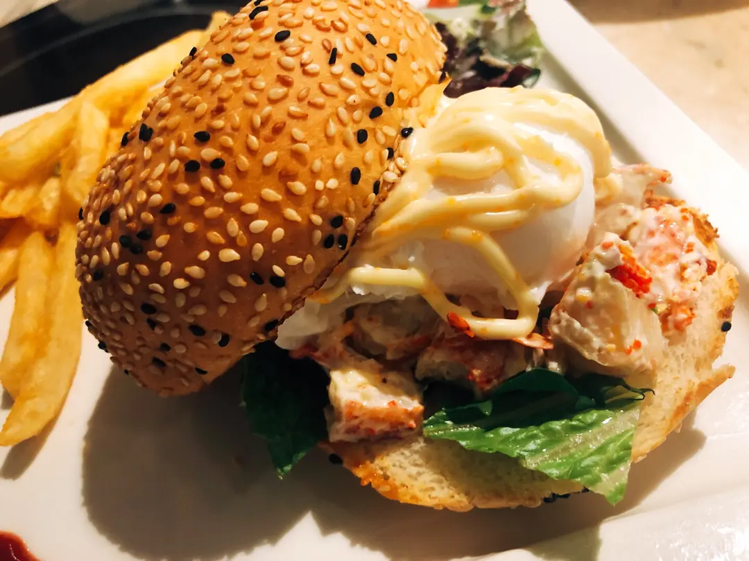龍蝦流心蛋漢堡配蟹子蛋黃醬