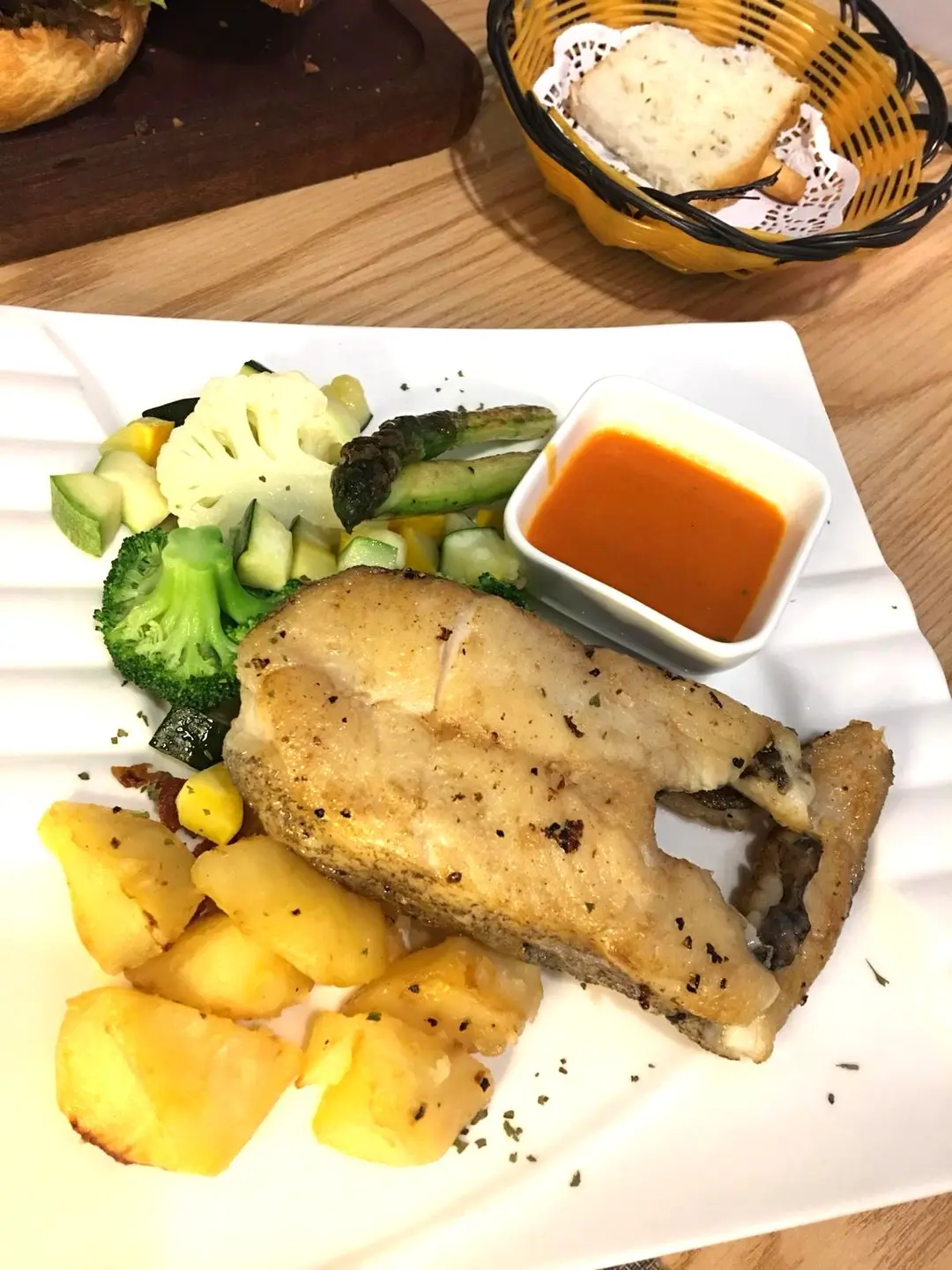 輕煎比目魚配烤甜椒汁