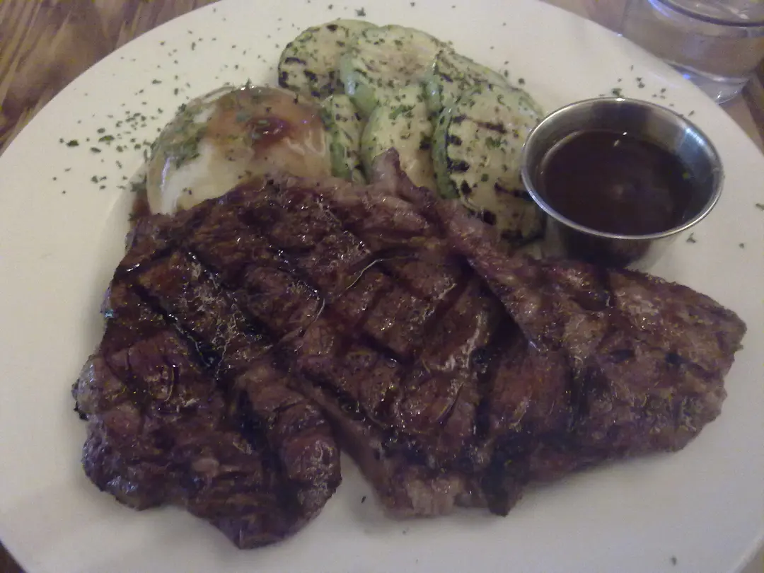 安格斯肉眼 (7成熟) 本身想叫西冷 但店員推介肉眼.本身有d怕肉林但味淡,但佢兩樣都做到.而且做到7成應有既外脆內暖.不過鹹味欠奉,幸好有燒汁搭配.都唔錯!薯溶好好食 絲瓜係唯一不到位之處