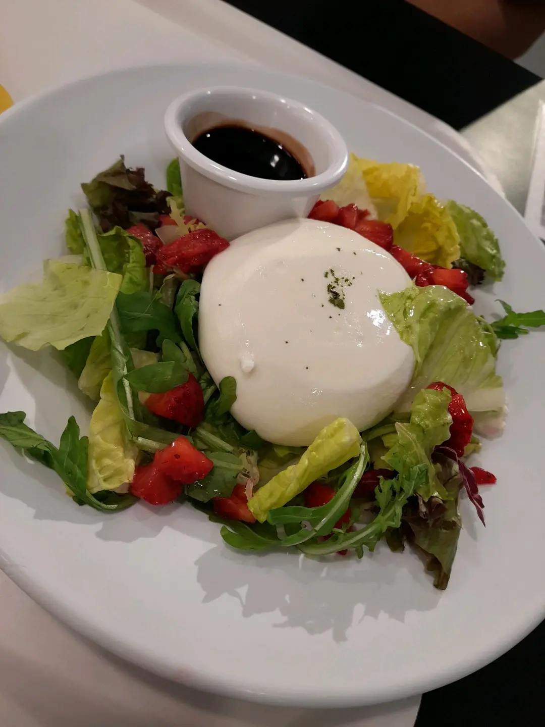 士多啤梨流心水牛芝士沙律配黑醋