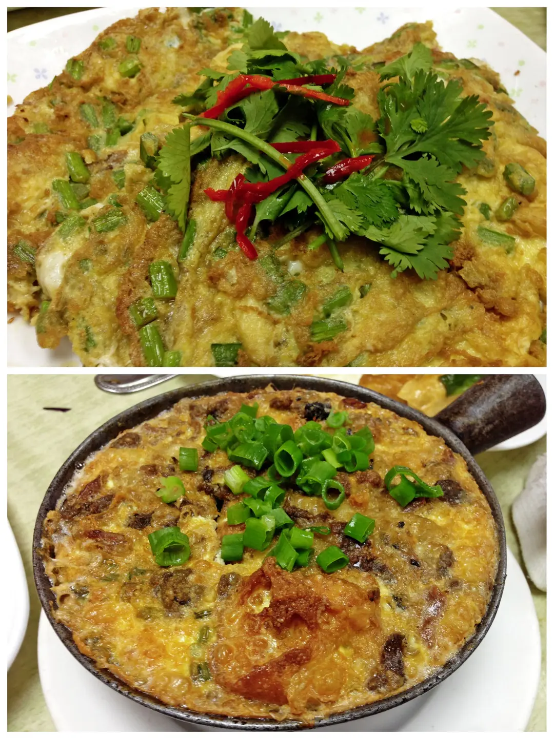Omelet with Fresh Crab Meat 鮮蟹肉煎蛋角, Baked Fish Intestine with Egg 雞蛋焗魚腸
