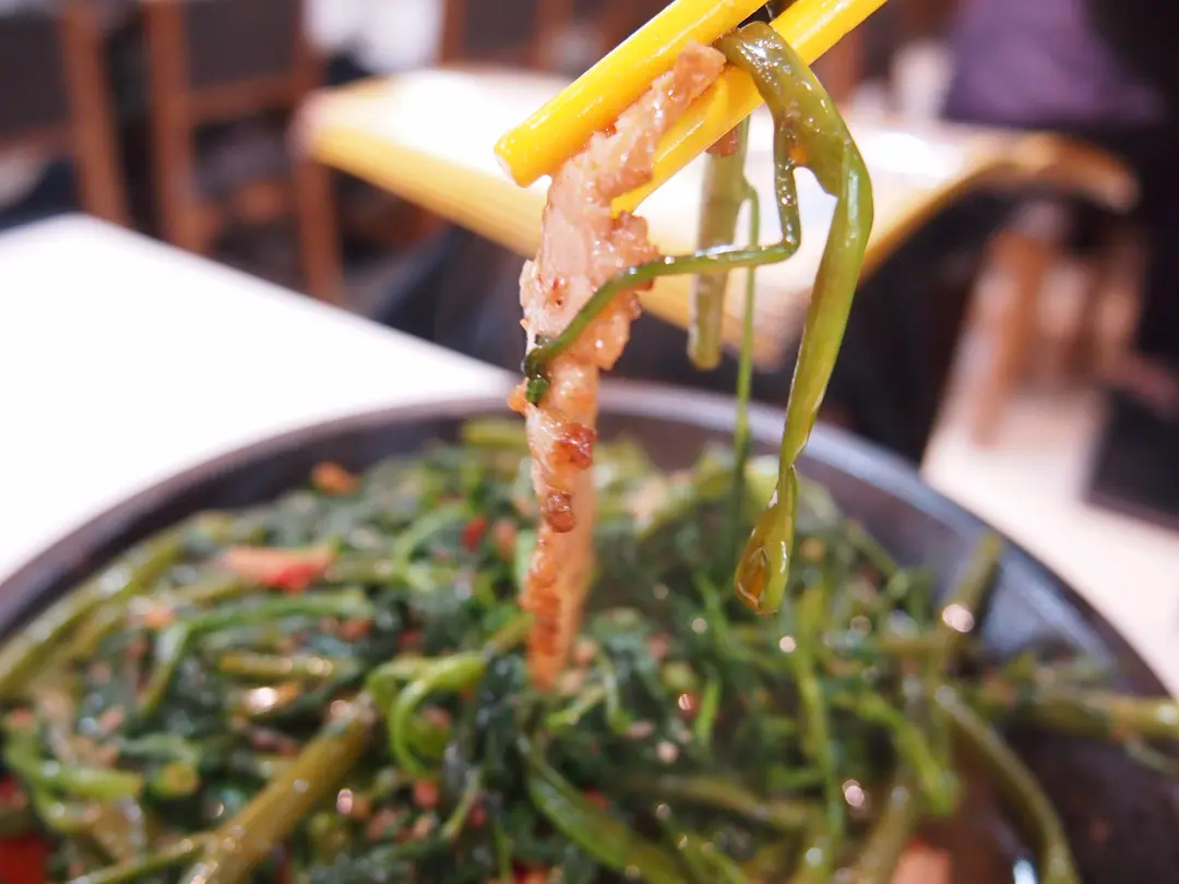 泰式豬頸肉鐵板炒通菜