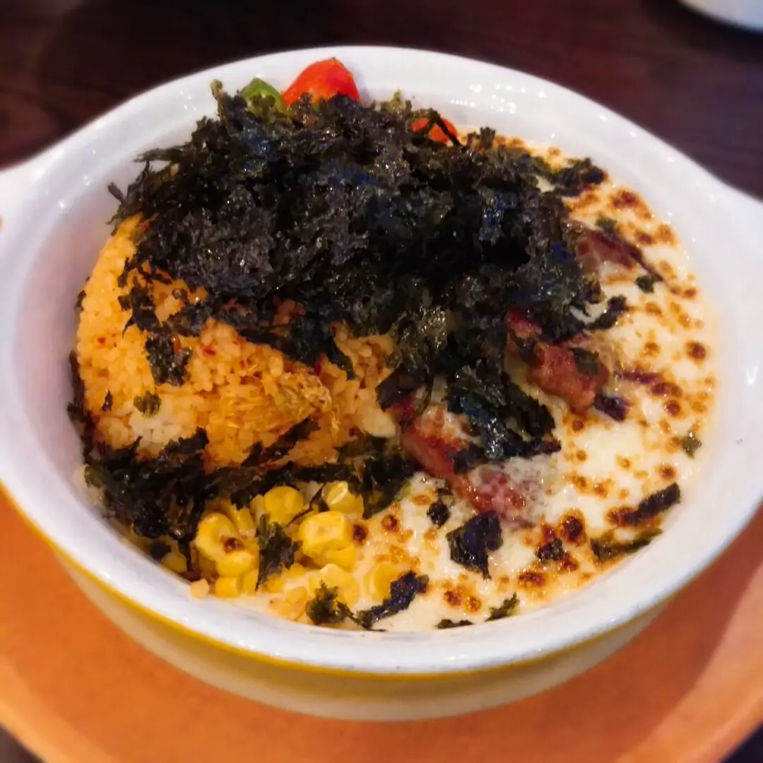 拉絲芝士烤豬肉拌飯配泡菜