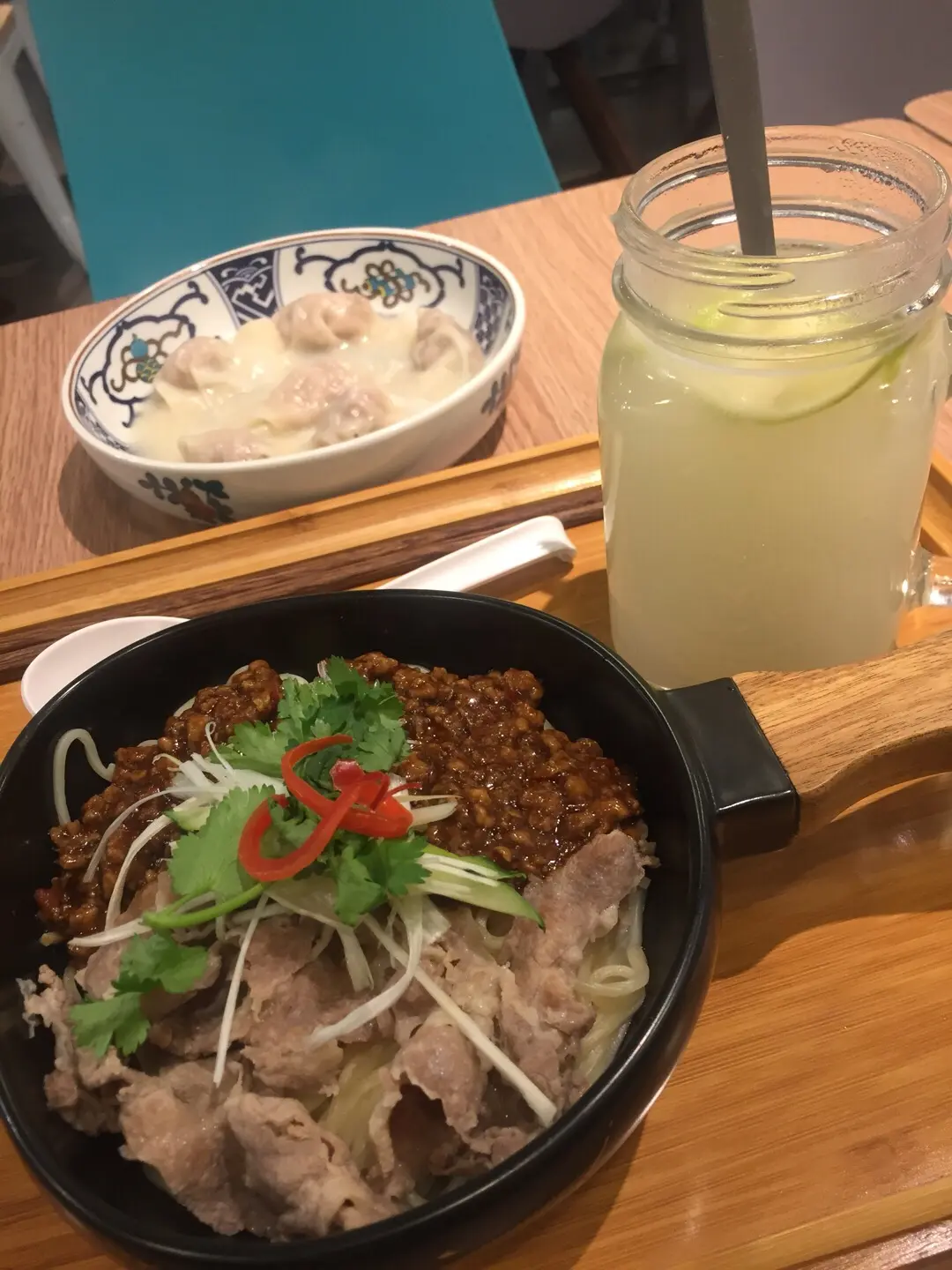 秘製肉醬担担撈面、青檸冬瓜薏米水、牛肝菌粟米餃