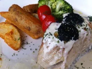 香煎黑鱈魚配墨魚籽忌廉汁