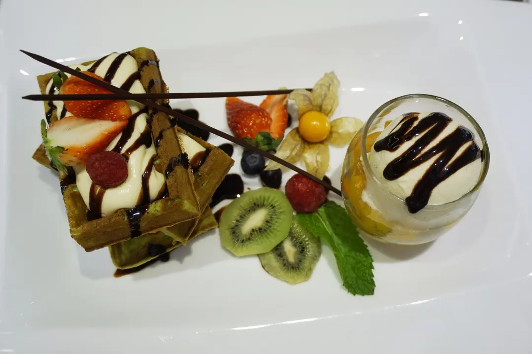 綠茶窩夫配Movenpick ice cream