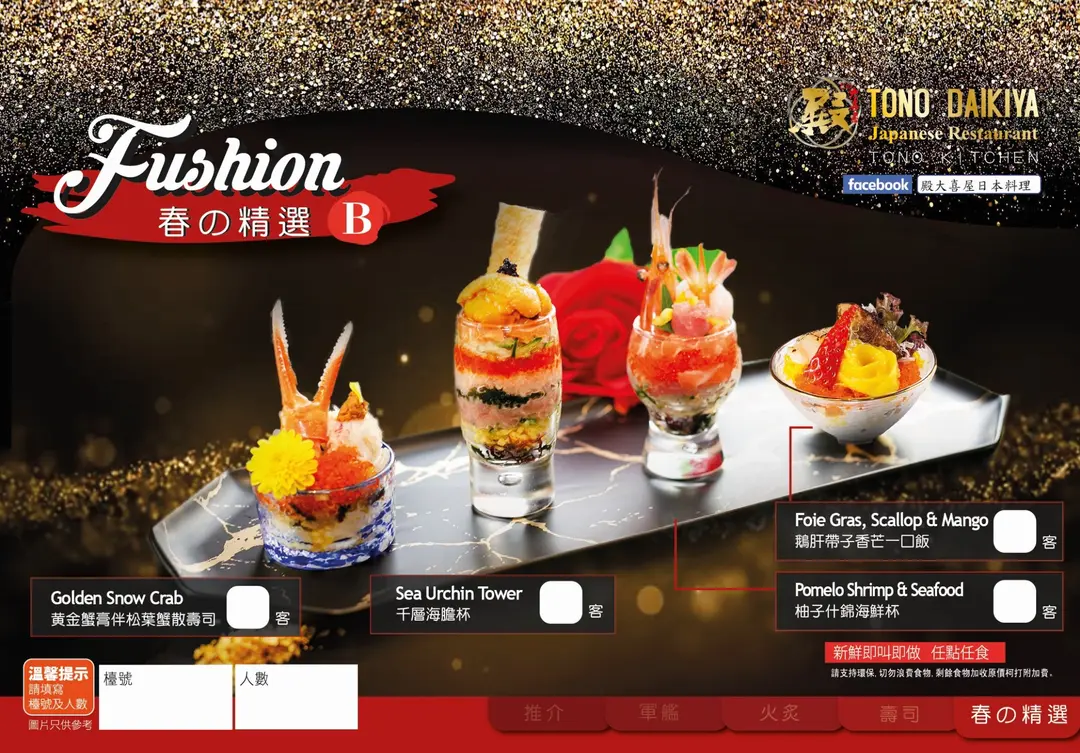 尖沙咀殿大喜屋,在2019年新春之際用色香味征服您,視覺的盛宴,玉盤珍饈,讓您食指大動,放題之饕餮只在殿大喜屋!