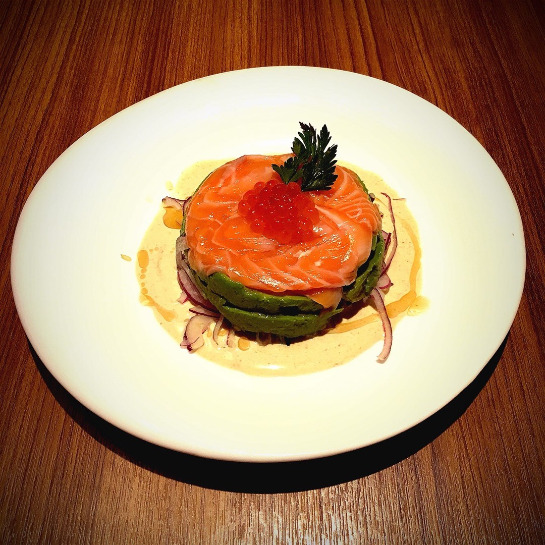 Salmon avocado salad with wasabi dressing