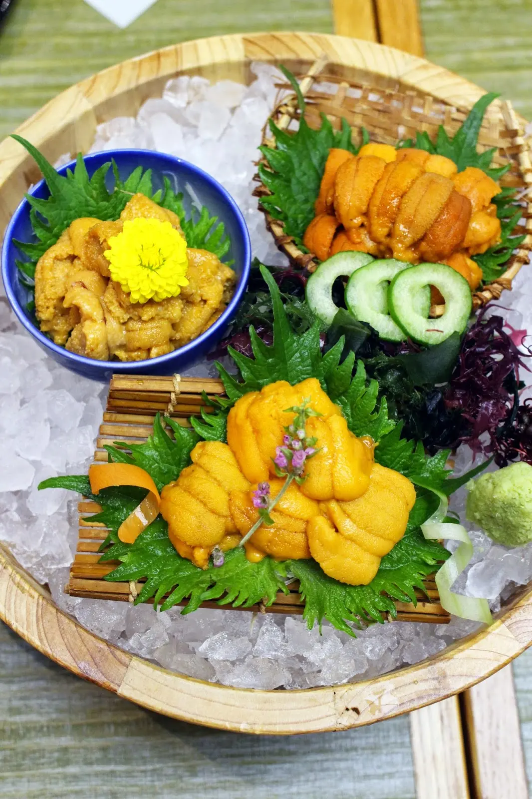 三款不同產地的海膽刺身