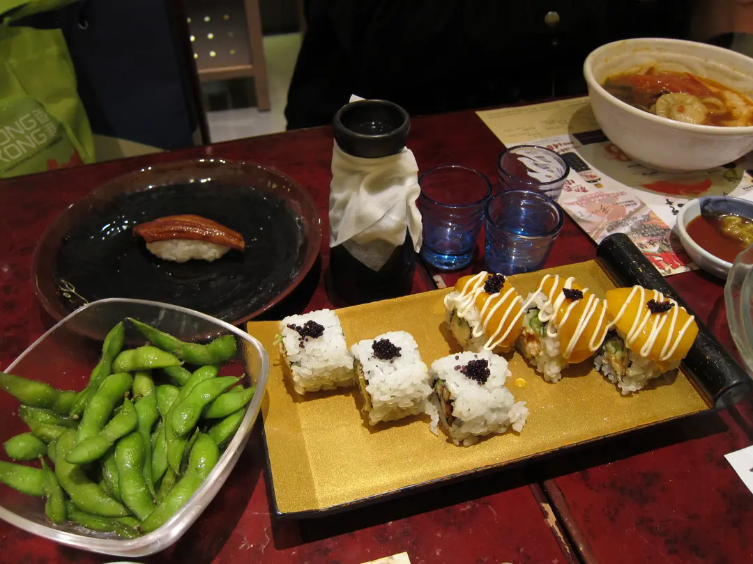 (左至右)枝豆, 軟穀蟹卷物, 香芒龍蝦沙律卷