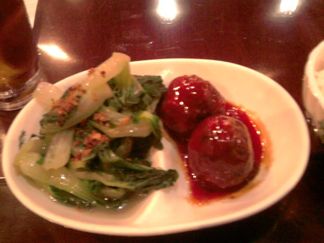 左邊蒜蓉白菜,右邊紅燒獅子頭