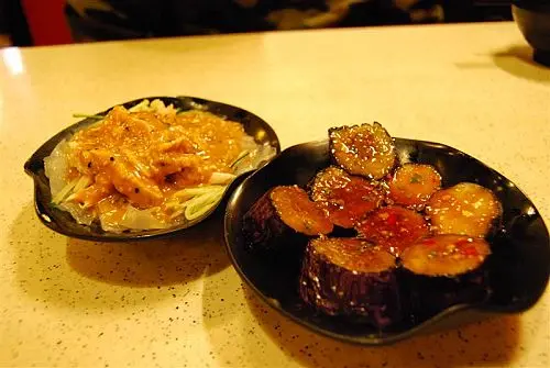 (左)雞絲拉皮(右)涼拌茄子
