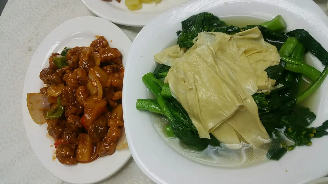 咕嚕肉(左)腐竹菜芯(右)