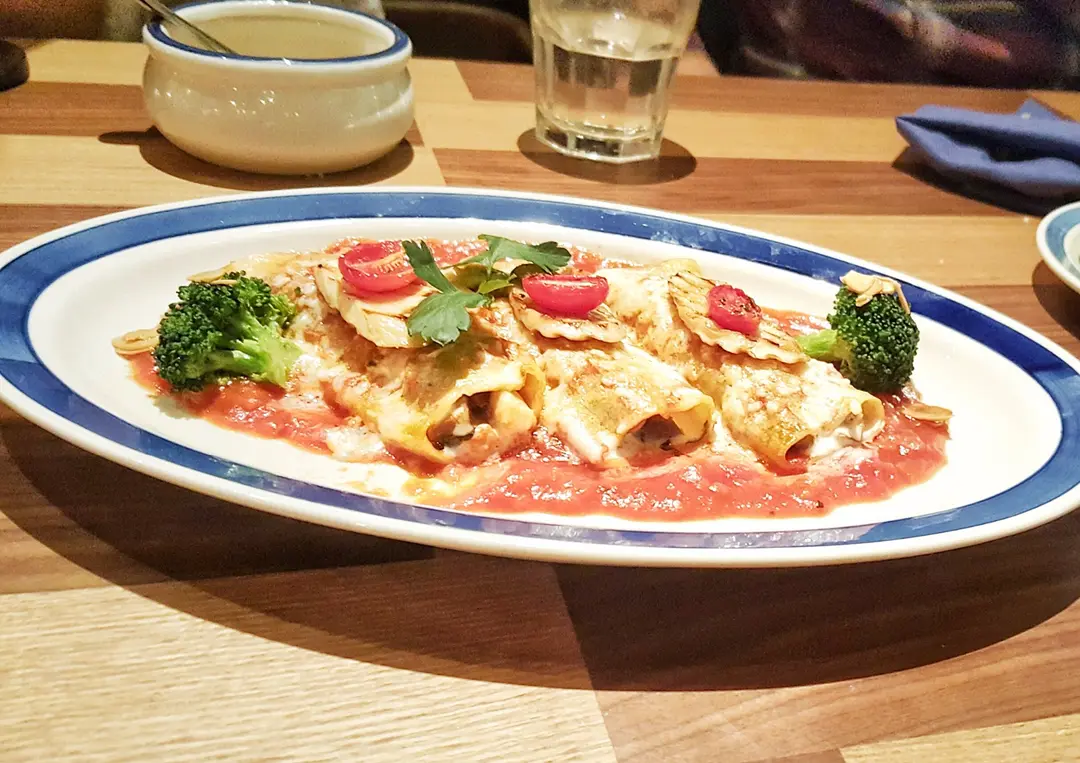 Eggplant Cannelloni with King Oyster Mushroom ahd Tomatoes